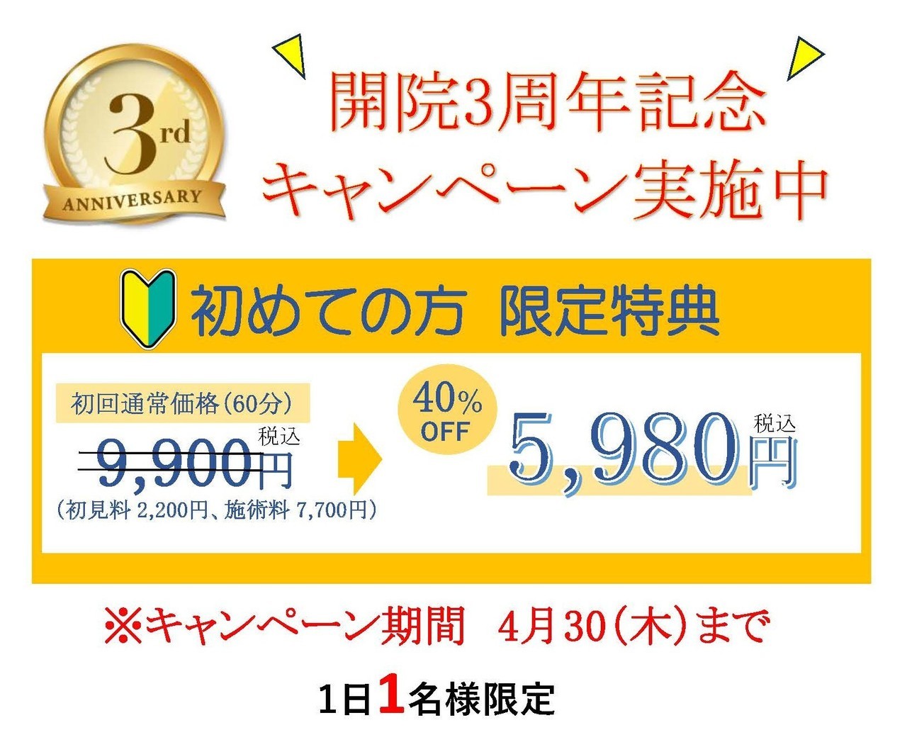 おかげさまで高知健康整体は、3月7日をもちまして開院3周年を迎えることができました。