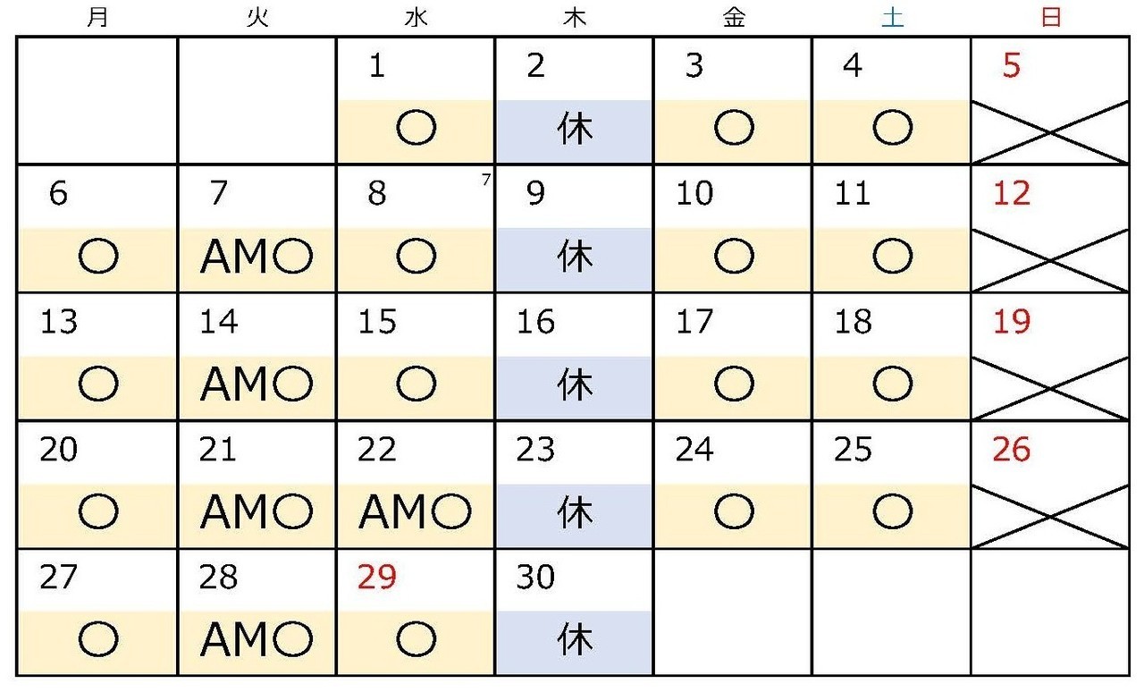 ※日曜・木曜、第1・2・3火曜午後、第4水曜午後は除く