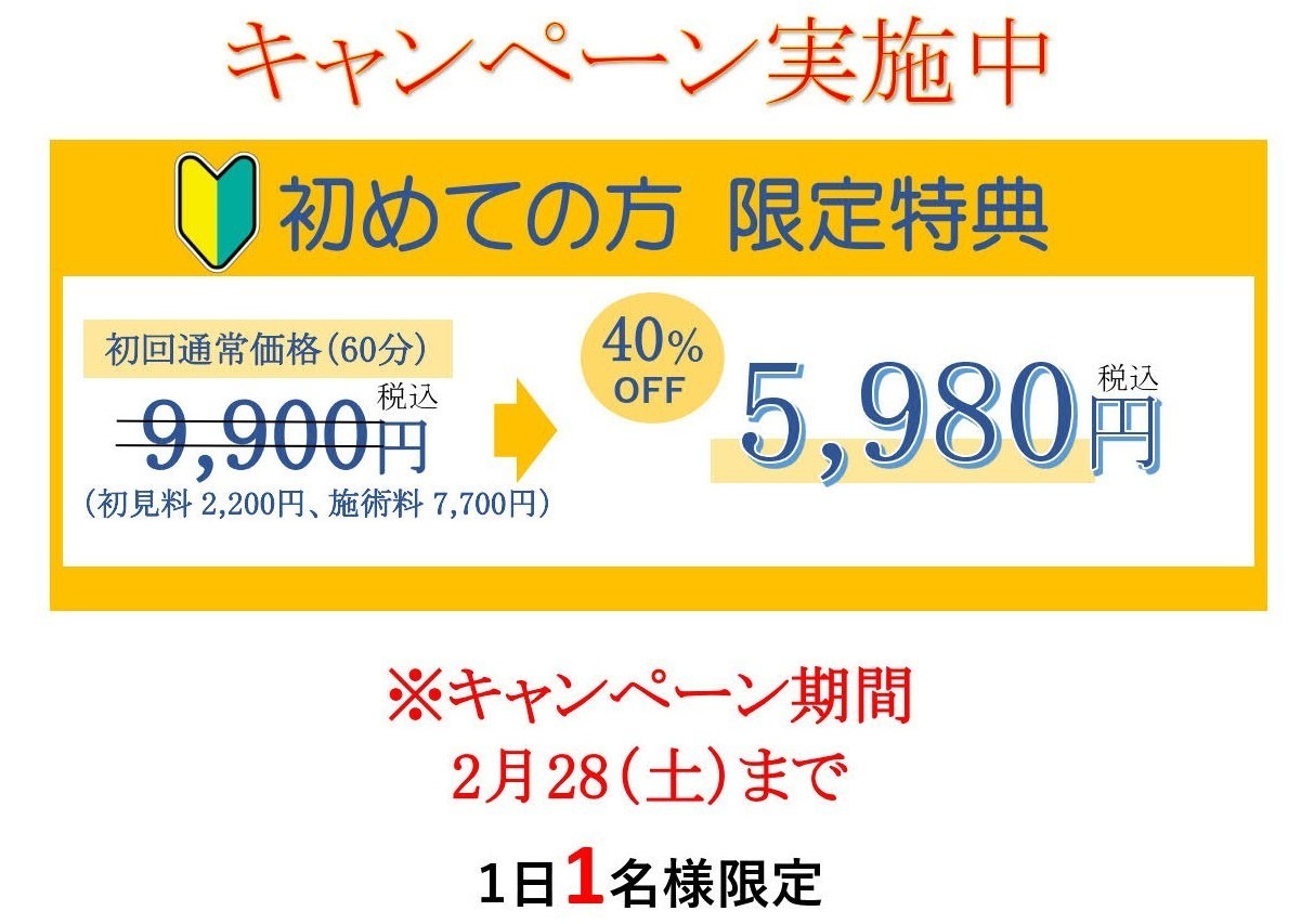 ※施術は通常40分です。お得な回数券(1回当たり5,500円)もあります。